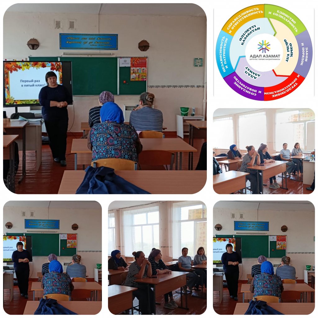 Кездесуде балалардың жаңа оқу жағдайына бейімделуі, орта буындағы оқу үдерісінің ерекшеліктері, тәртіп мәселелері және отбасы мен мектептің өзара әрекеттестігі талқыланды.